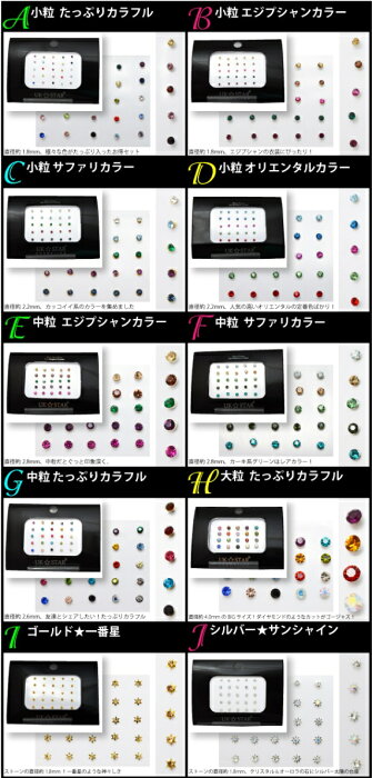 ベリーダンスはもちろん、社交ダンス・HIPHOP・ジャズ・サンバ・フラメンコ…、 全てのダンスに対応出来る シンプルで見栄えの良いダイヤモンドカットの一粒ビンディが贅沢25粒セット! ハリウッド風モデル&女優メイクにもGOOD! 激しいダンスを踊るときや各種パーティーでとても高いアクセサリーを落としてしまったりなくしたりしたことありませんか?↓↓ビンディーシールだったら1個約50円位!気軽に付け替えたり、気分や衣装によって使い分けができるのです! ↓↓し・か・も↓↓ 大粒のビンディーを付ければ遠くからでもキラキラ たくさんのデザインから用途に選べる種類豊富LOVERSINDIAだけ! おでこにポチッとシールを貼るだけなので簡単!カラフルタイプがおススメです 「今日だけピアス」がすぐできる!大粒タイプがおススメです 小粒の丸型ビンディがオススメです ↓パーティー・ダンスメイクにぴったり!↓◆新デザイン入荷!◆◆全18種類◆ NEW⇒主役級大粒セット ⇒注目!髪用ビンディシール
