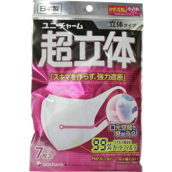 【数量限定】ユニチャーム 超立体マスク 小さめサイズ 7枚入 かぜ・花粉用 日本製 高学年のお子様にも ( 4903111901869 )※パッケージ変更の場合あり 無くなり次第終了
