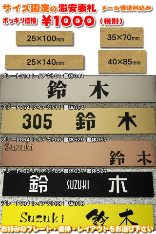 】・暖簾(のれん)・絵画(かいが)・掛け軸(かけじく)■長方形マンションプレート表札 ▼サイズ固定 ▼1ミリ単位でサイズ変更可能 ├700円 ├1,000円 ├1,500円 ├2,000円 ├2,500円 ├3,000円 └4,000円 ■23x80■40x100■40x120■40x180mm(紺・青色限定) ■25x100■25x140■35x70■40x85mm ■30x170■50x100mm ■40x210■60x140mm ■50x240■70x180mm ■60x280■80x210mm ■70x320■90x240mm ├1,800円 ├2,800円 ├3,800円 ├6,800円 ├9,800円 ├12,800円 ├16,800円 50平方cmまで 100平方cmまで 150平方cmまで 300平方cmまで 600平方cmまで 900平方cmまで 1200平方cmまで ▲プレート21種類 書体31種類に限定の激安表札 ▲プレート32種類 書体210種類 ↓↓↓Step1〜Step6をメモして頂くと注文がスムーズです↓↓↓ 表札の作成実績です\(^o^)/
