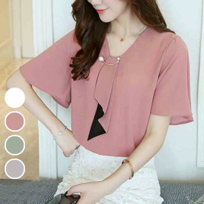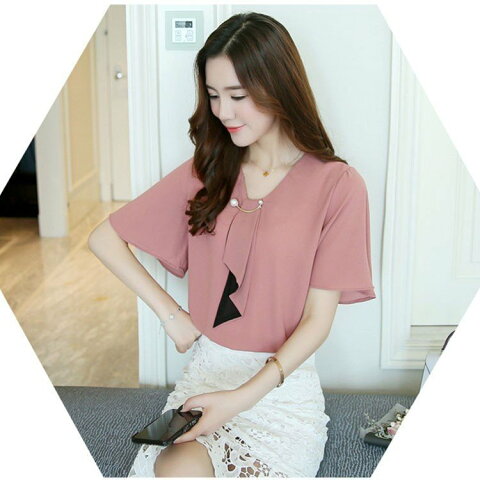 レディース シフォンシャツ ブラウス ブラウス 白 半袖 ブラウス オフィス ブラウス 通勤 韓国風 トップス OL 着痩せ オシャレ 大人 上品