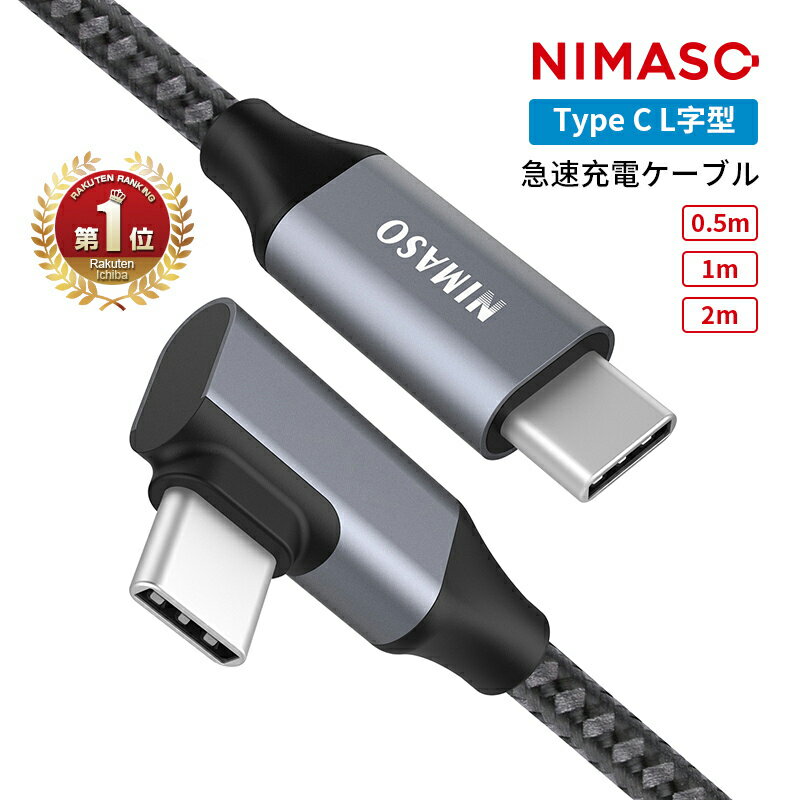 【楽天1位】【2点目半額クーポン配布中】NIMASO TYPEC L字型ケーブル 0.5m 1m 2m PD急速充電【18ヶ月保証】 TYPE C to type Cケーブル USBC ケーブル ゲーム用ケーブル Android スマホ 翌日配送 iPad Pro Macbook Sony Huawei switch iPad Pro11/12.9 iPad air5対応 USB2.0