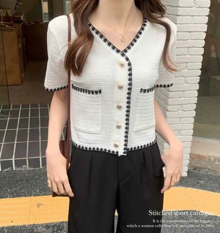 ※関連キーワード カーディガン トップス ニット ニットカーディガン ニットトップス セーター 羽織 羽織り 上着 アウター 薄手アウター 半袖カーディガン バイカラー ジャケット風 きれいめ シンプル 大人 オフィス 上品 フェミニン フォーマル オフィスカジュアル おしゃれ ガーリー 春 秋 冬 SS AW デート オケージョン 入学式 卒業式 七五三 参観日 通勤 大人 OL 学生 ニット 飾りボタン ポケット 釦 ポケット付き ステッチ ステッチデザイン ホワイト ブラック フリーサイズ Fサイズ コンパクト コンパクトシルエット 細見え 薄手 半袖 ショート丈 Vネック 高見え ツイードライク レトロ クラシカル ヴィンテージ 韓国 韓国ファッション きれいめカジュアル今週の新作♪