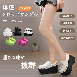 厚底 サンダル クロッグサンダル レディース サボサンダル EVAサンダル 水陸両用 2way履き 滑り止め 軽量 グミ足感 美脚 ヒール10cm バックバンド付き 防水 通気性 おしゃれ カジュアル 夏 ビーチ 海 リゾート プール キャンプ アウトドア スリッパ