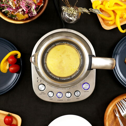 温度管理が難しい温泉たまごやローストビーフ、付属のガラス鍋を使えばボタン1つでチーズフォンデュなどお作りいただけるレシピは様々。