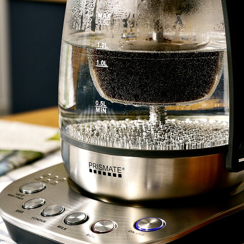 スタイリッシュなガラスのケトルはおしゃれなだけでなく沸騰するお湯や調理中の食材の様子も見ていただけます。