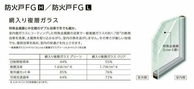 防火戸FG-L FIX窓 外押縁タイプ Low-E複層ガラス(網入り) / アルミスペーサー仕様 06003 W:640mm × H:370mm LIXIL リクシル TOSTEM トステム