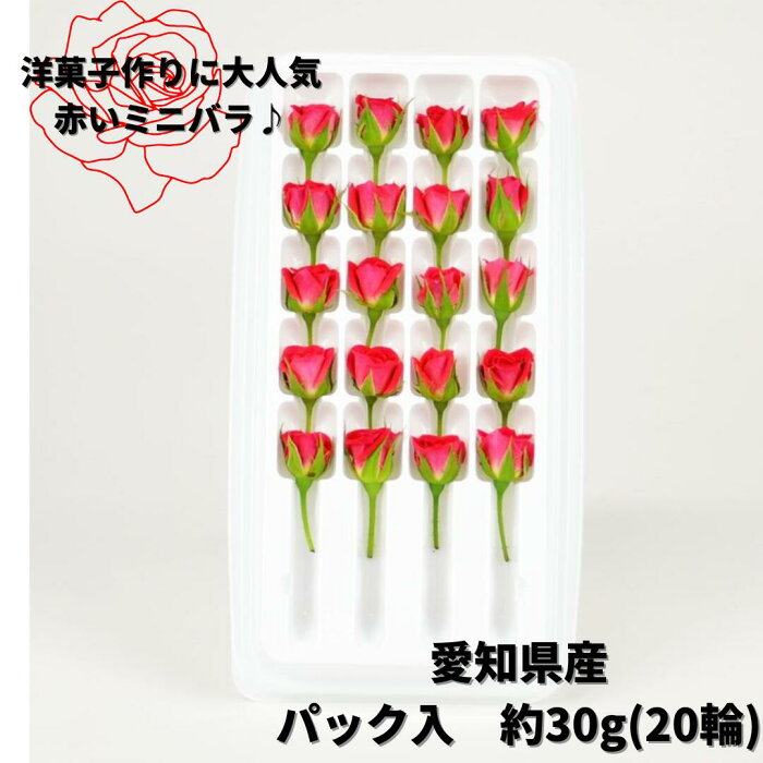 ベルローズ(食用の小さいバラ)赤 愛知県産 20輪 ミニバラ エディブルフラワー 食用花 ケーキやサラダに 飾り 御祝 記念日 誕生日 市場直送