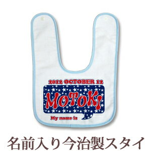 スタイのデザインにはお子様の「お名前」「お誕生日」と「出生時間」が一緒に入ります。