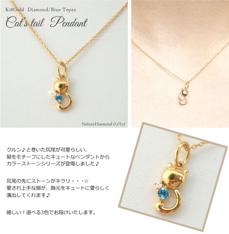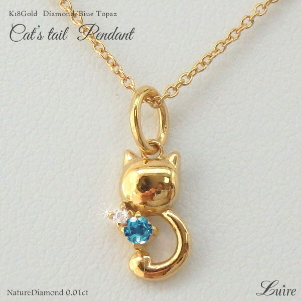 【P5倍】18K K18ゴールド ネコ 猫 ダイヤモンド ブルートパーズ ネックレス ペンダント k18WG YG PG 誕生石 誕生日 プレゼント ギフト 自分ご褒美【送料無料】